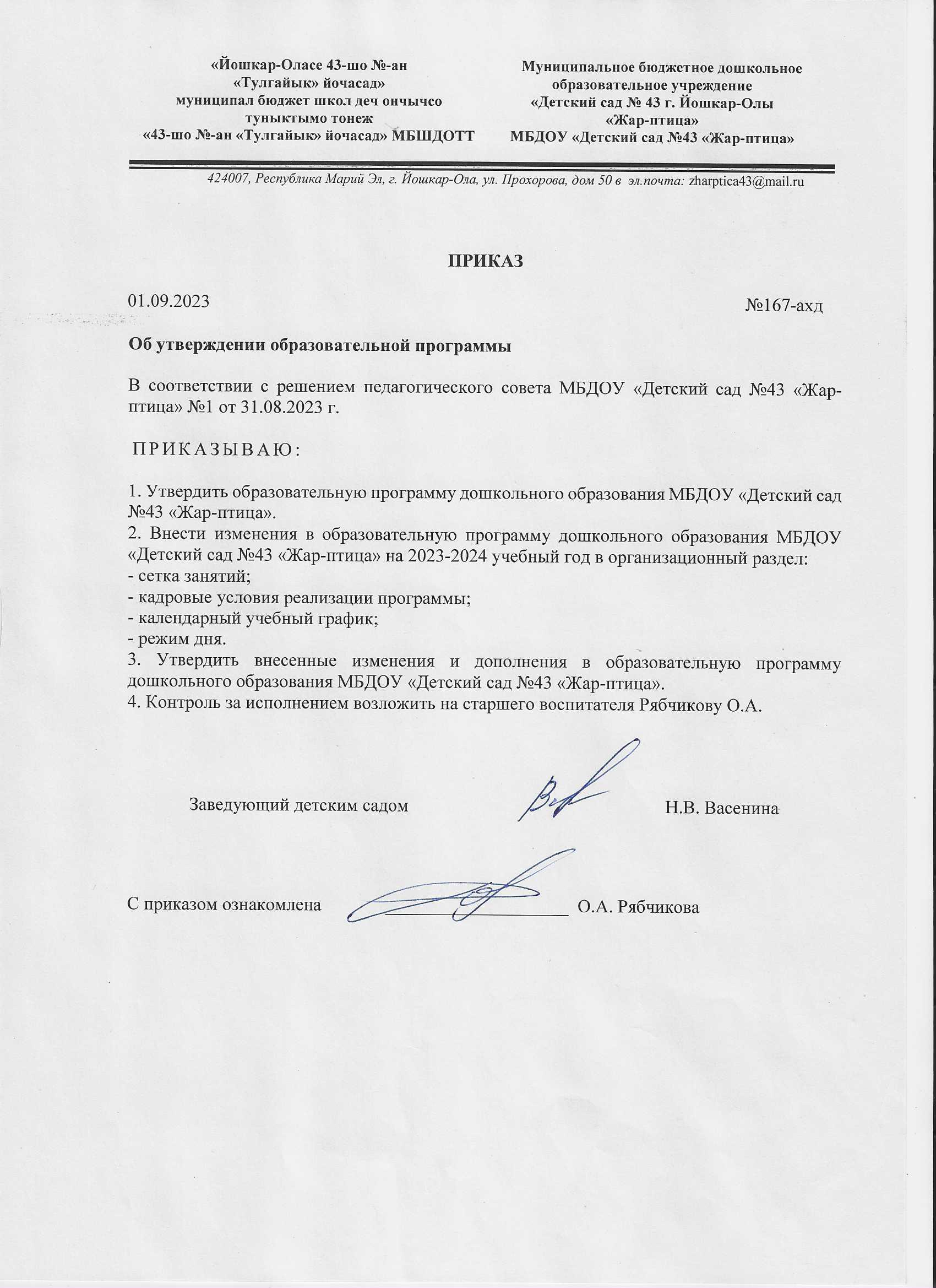 Приказ №167 от 01.09.2023 Об утверждении образовательной программы.jpeg