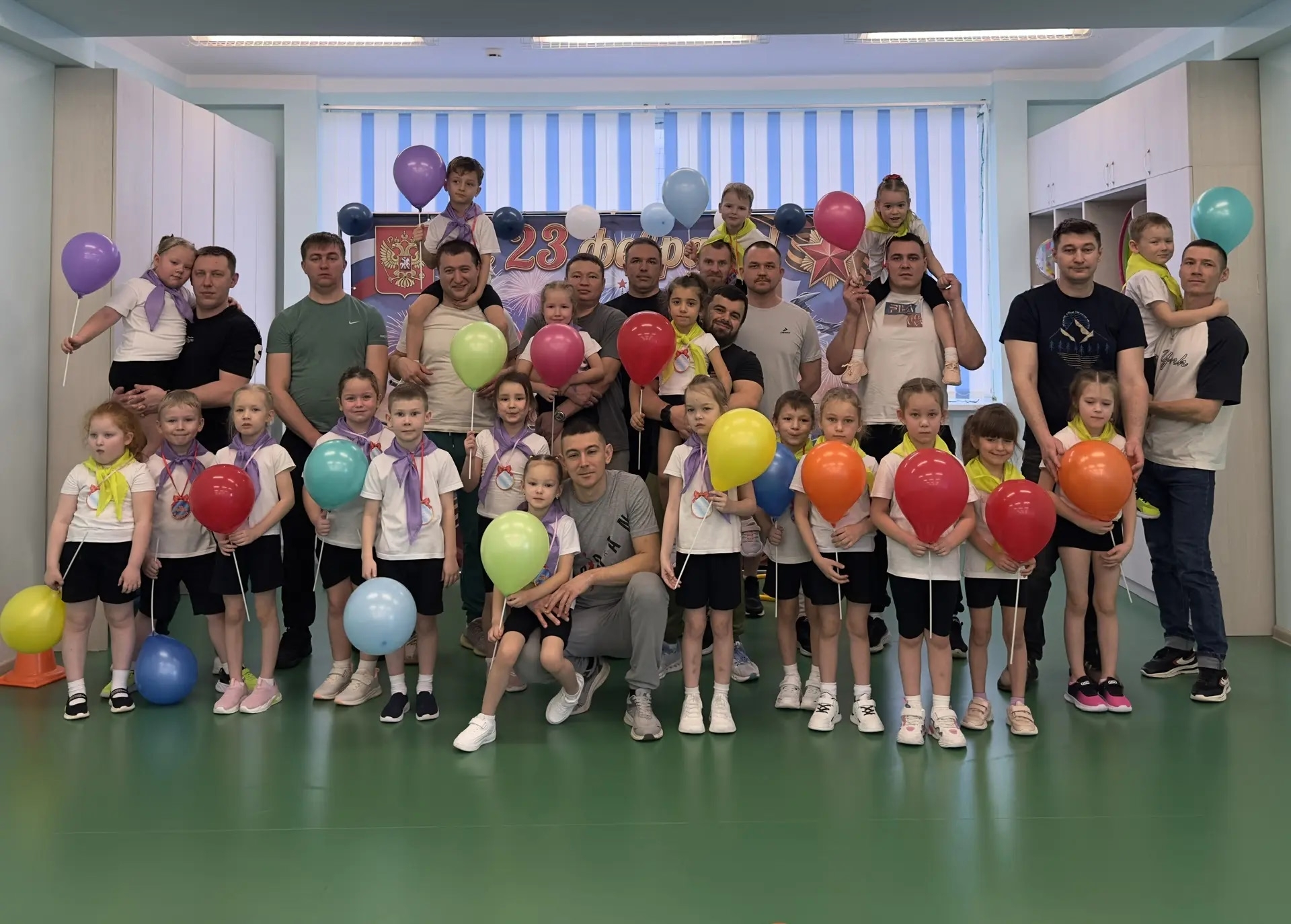 На празднике воспитанники вместе с папами сделали зарядку, пели песни и читали стихи о защитниках России. Интересно и весело прошли спортивные эстафеты.