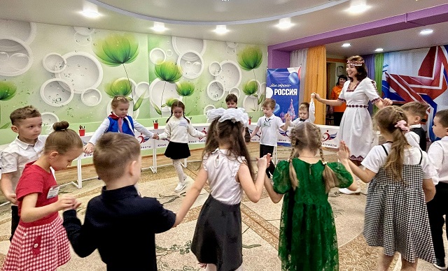 Ребята из детских садов 9-го микрорайона пришли к нам, чтобы поучаствовать в игре и показать свои знания родной страны и родного края.
