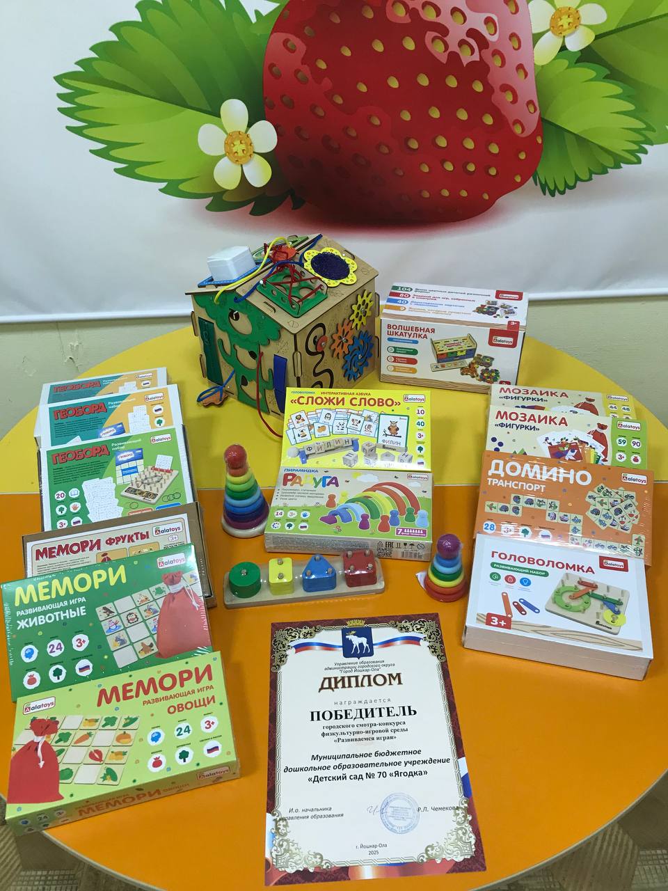 Наши усилия не прошли даром. Жюри конкурса высоко оценило созданные условия для физкультурно-оздоровительной работы маленьких воспитанников. Наш детский сад вошел в число Победителей! Приятным сюрпризом к Диплому Победителя стала большая коробка с деревянными играми фирмы Алатойс!