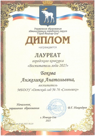 Диплом лауреата городского конкурса "Воспитатель года - 2025", 2025 год |