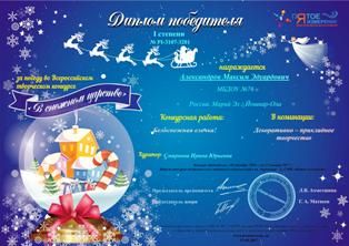 Диплом победителя I степени во Всероссийском творческом конкурсе «В снежном царстве» , 2017 год |