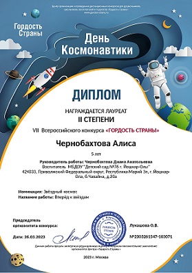 Диплом II степени VII Всероссийского конкурса "Гордость страны", 2023 год |