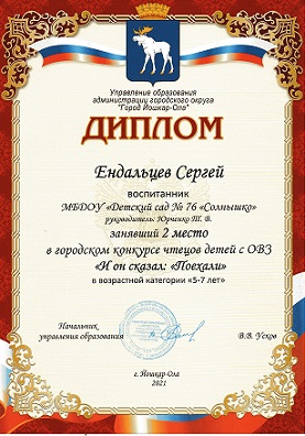Диплом за 2 место в городском конкурсе чтецов "Затейники" детей с ОВЗ, 2022 год |