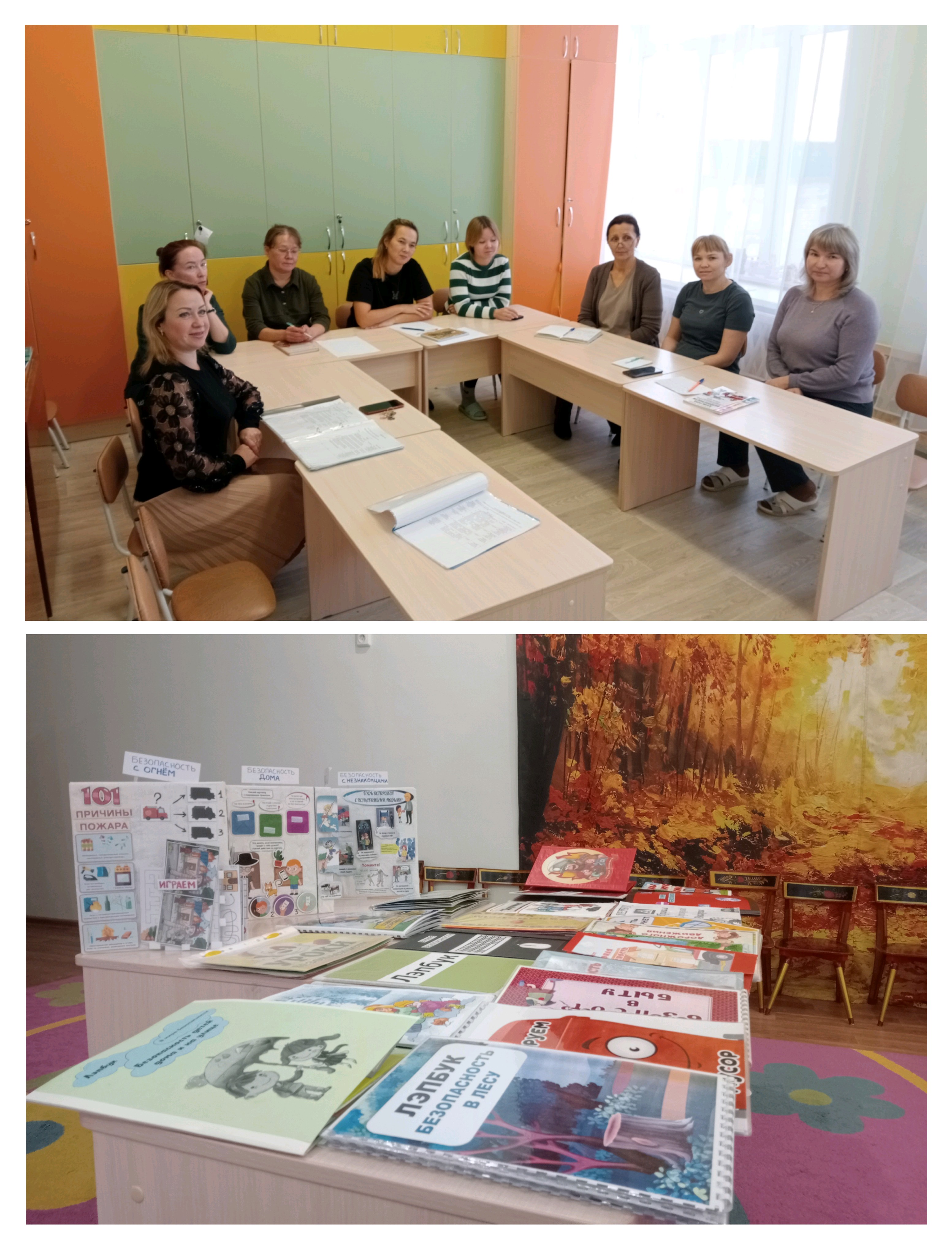 Старший воспитатель Столярова С.В. познакомила педагогов с системой работы по безопасному поведению детей в различных ситуациях, подробно рассказала, какие методы и приемы можно применить при проведении мероприятий с детьми по правилам пожарной, дорожной, витальной, экологической безопасности.