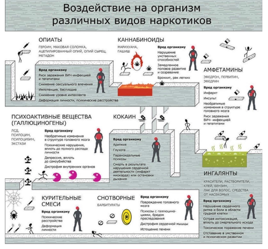 Вниманию представляются памятки по профилактике употребления психоактивных вещест, их пагубное воздействие на организм человека.