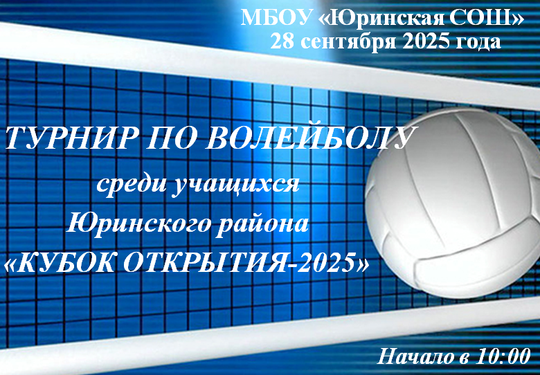 28 сентября в пгт. Юрино запланировано проведения турнира по волейболу среди учащихся Юринского района "КУБОК ОТКРЫТИЯ-2025". Участниками станут волейболисты с 5 по 11 классы. Соревнования за планированы на базе Юринской школы, начало в 10.00. Афиша во вложении.
