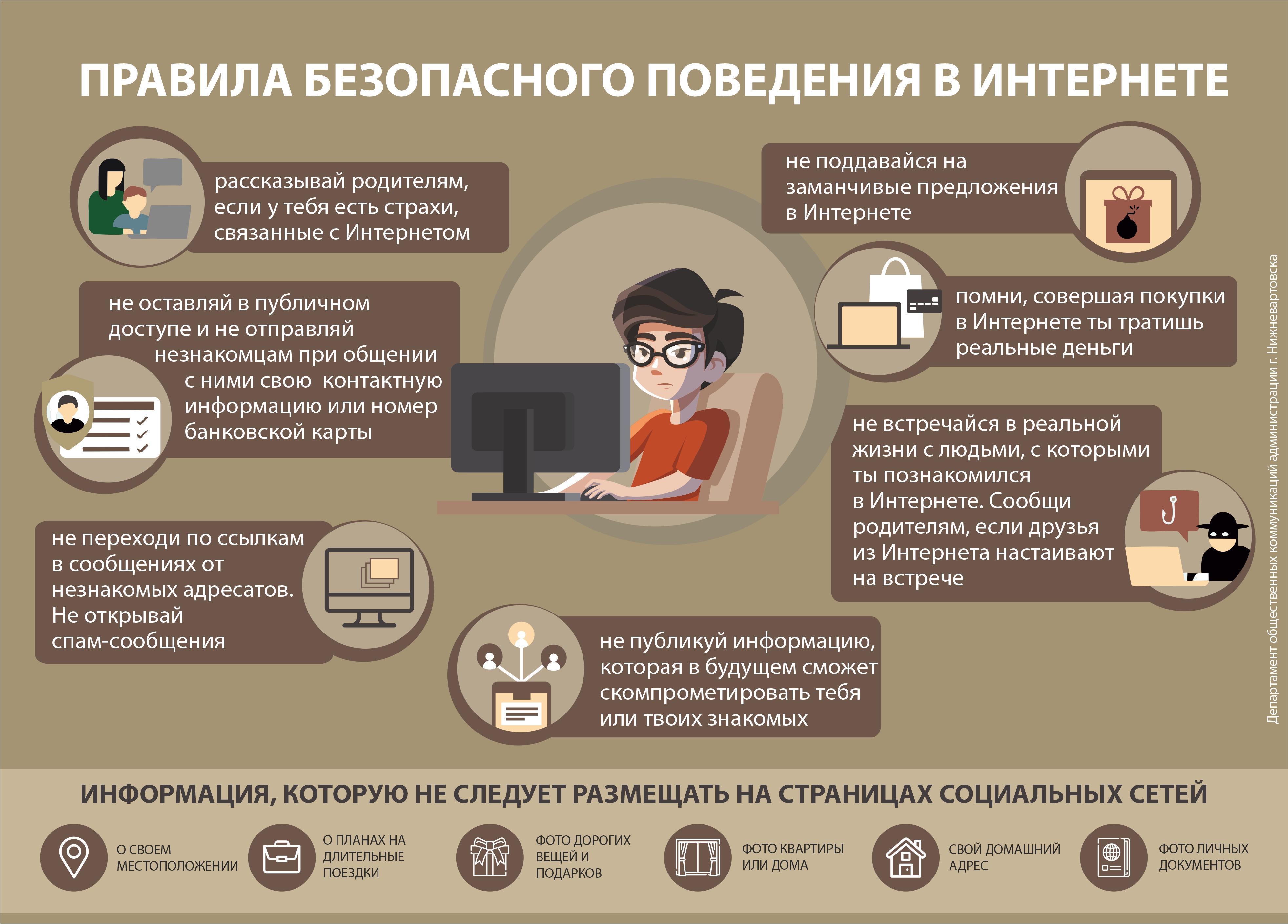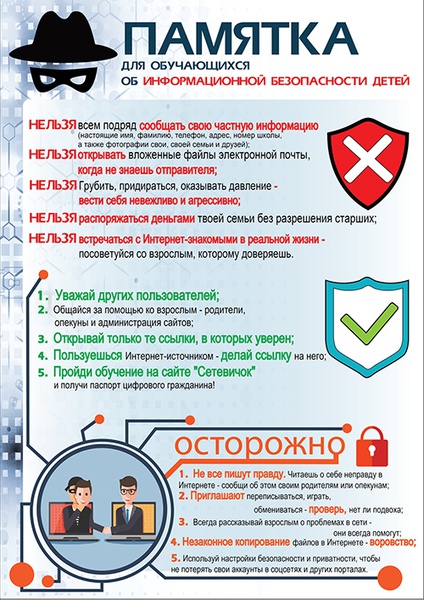Вашему вниманию предлагаются следующие памятки: - Памятка об информационной безопасности детей; - Правила безопасности в сети Интернет. Информация во вложении.