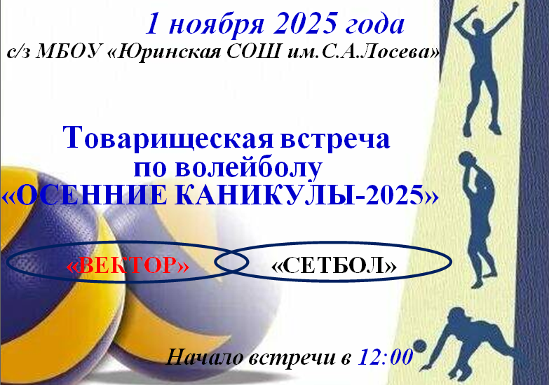 31 октября и 1 ноября в рамках работы по плану "Осенние каникулы-2025" и в целях подготовки к предстоящим соревнованиям состоятся товарищеские встречи по волейболу среди учащихся Центра.