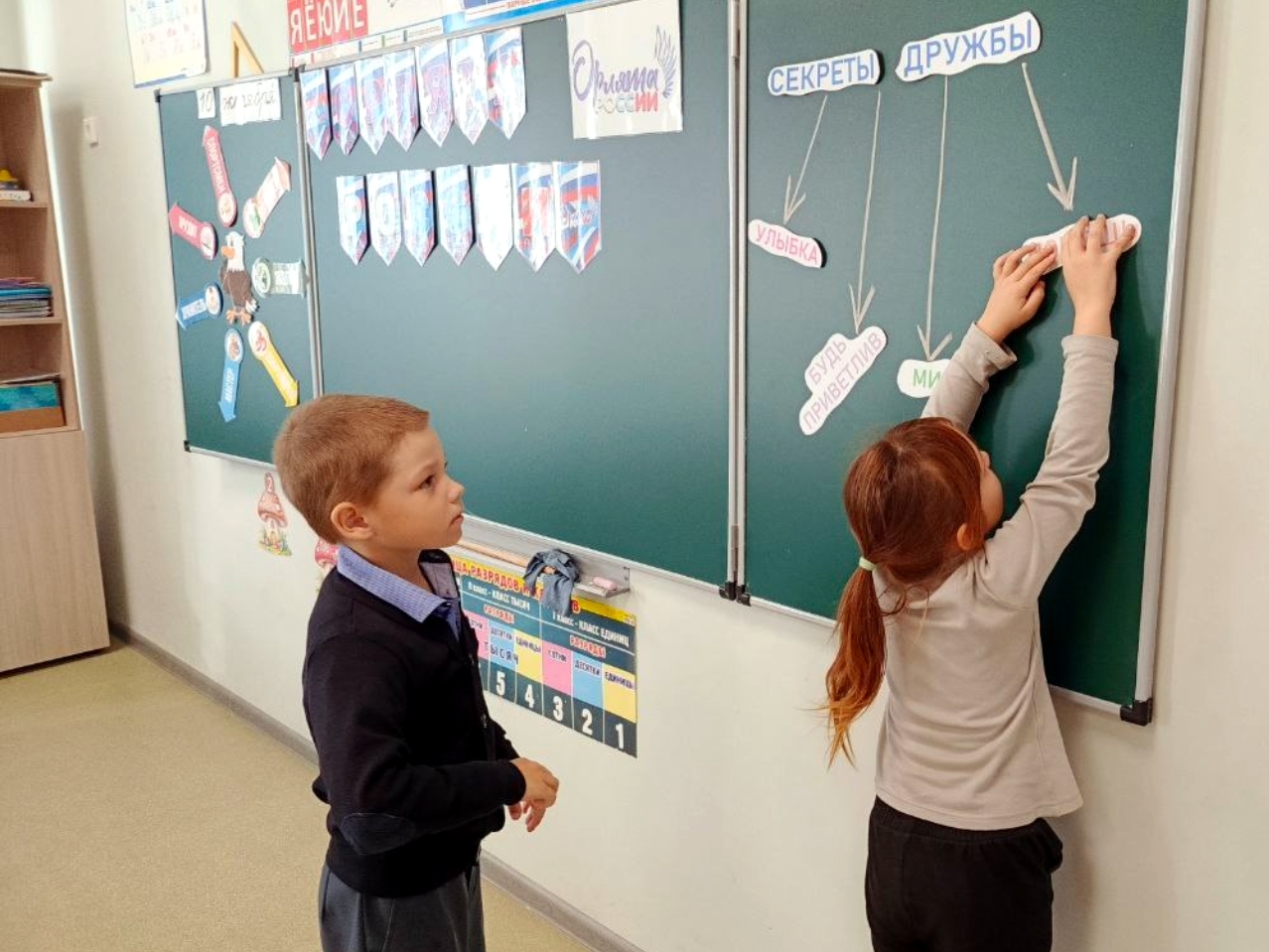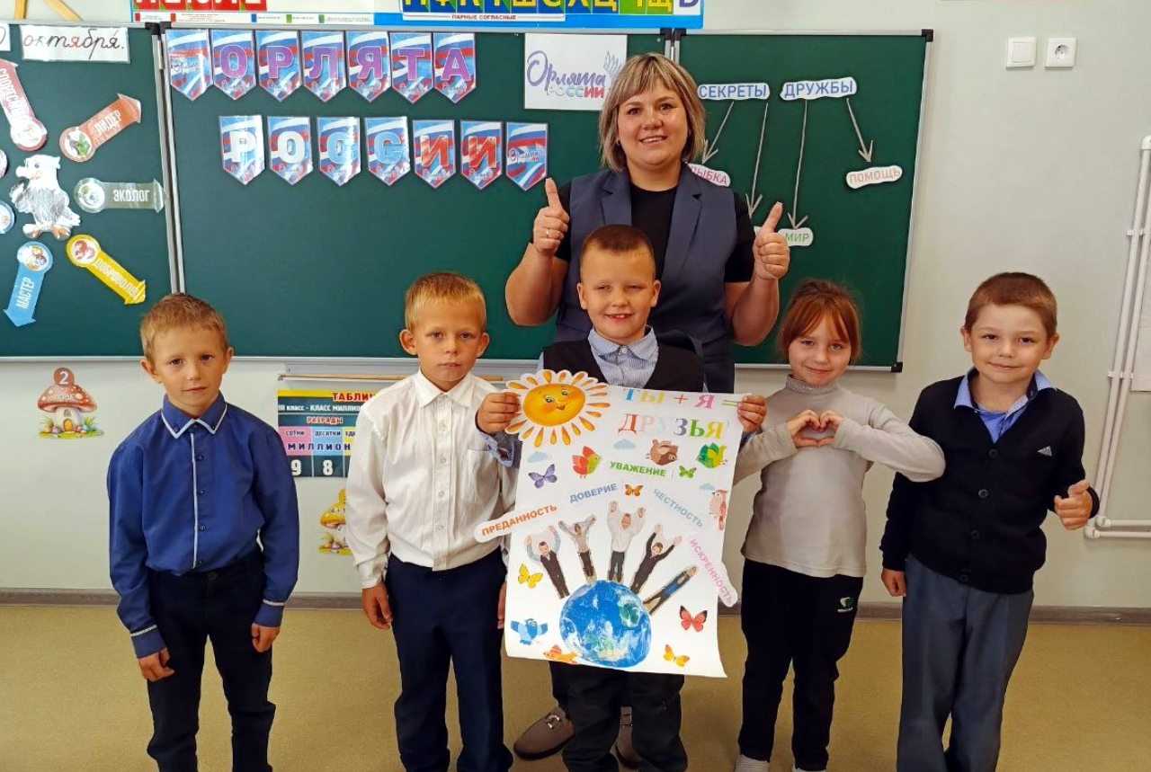 10 октября в рамках программы «Орлята России» состоялось увлекательное занятие в 1 классе, посвященное теме дружбы. Основная цель мероприятия — формирование у детей представлений о настоящих дружеских отношениях и развитие навыков позитивного общения. В ходе занятия классным руководителем Натальей Сергеевной Скудиной была проведена игра «Нити добра», целью которой является демонстрация детям того, что они связываются друг с другом невидимыми ниточками добра тогда, когда говорят друг другу добрые, приятные слова. Ребята рассматривали фотографии с изображенными на них детьми в разных эмоциональных состояниях и делали выводы, с кем из них они хотели бы подружиться. С помощью учителя наши орлята оформили плакат "Ты+я=друзья". Ученики разбирали различные жизненные примеры, учились различать правильное и неправильное поведение в дружбе, изучили правила и антиправила дружбы. Все это способствует формированию осознанного подхода к построению дружеских отношений. Мы уверены, что программа «Орлята России» поможет нашим первоклассникам расти сплоченным, отзывчивым и дружным коллективом. Впереди у ребят еще много интересных открытий и свершений!
