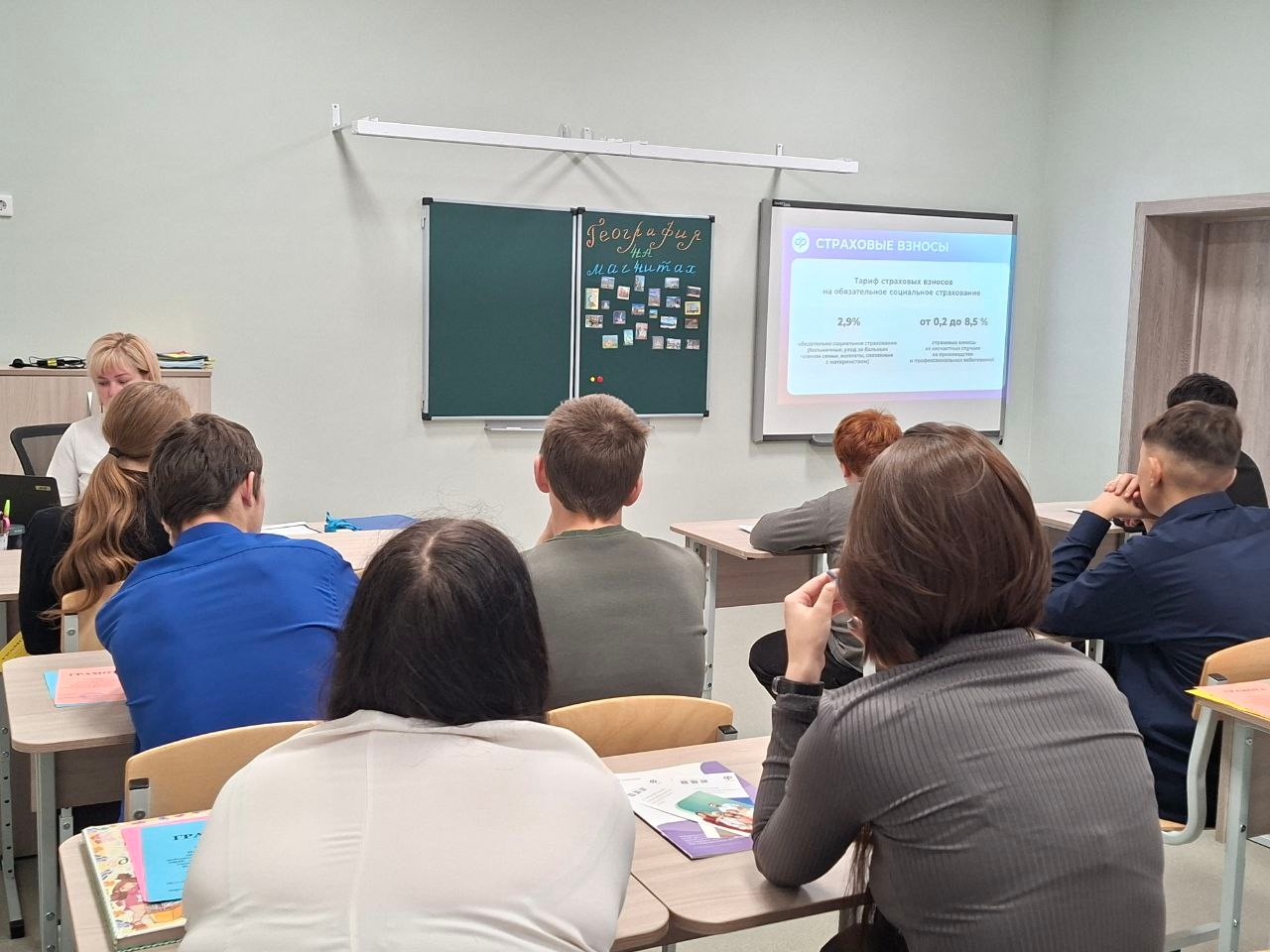 Сегодня состоялась важная для обучающихся 9-11-х классов нашей школы встреча с сотрудником Пенсионного фонда Российской Федерации Марией Сергеевной Басовой. Цель мероприятия заключалась в информировании старшеклассников о пенсионной системе, правах и обязанностях будущих пенсионеров, формировании будущей пенсии и особенностях начисления страховых взносов. Мария Сергеевна подробно рассказала ребятам о современных возможностях формирования пенсии, выборе оптимальной стратегии накопления пенсионных накоплений и важности осознанного подхода к будущему финансовому благополучию. Встреча была организована в рамках повышения финансовой грамотности школьников и подготовки их к самостоятельной взрослой жизни. Обучающиеся получили полезную информацию, которая пригодится им в будущем, задавали интересующие их вопросы и активно участвовали в дискуссии. Такие встречи помогают молодым людям лучше ориентироваться в сложной сфере финансовых вопросов и делают первый шаг к обеспечению достойной старости. Выражаем благодарность сотрудникам Пенсионного фонда за интересную и познавательную встречу!