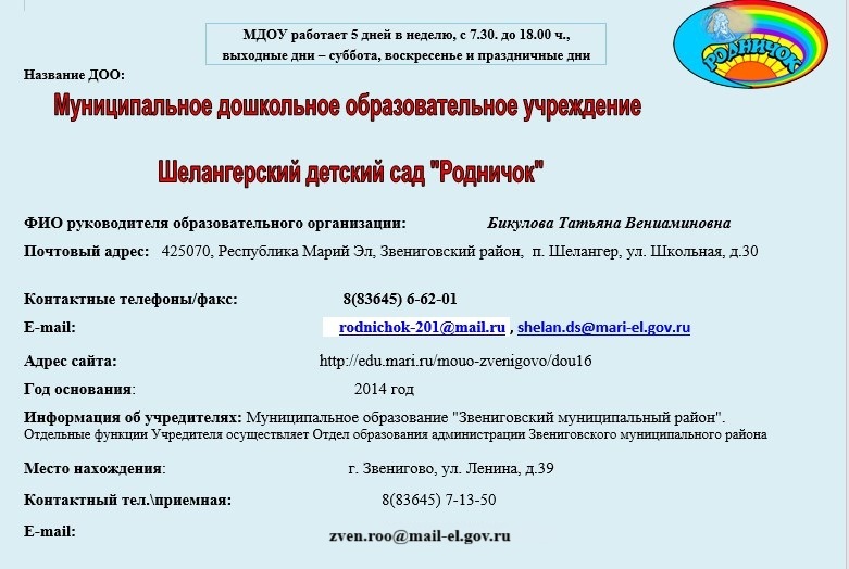 МДОУ «Шелангерский детский сад «Родничок» > Основные сведения