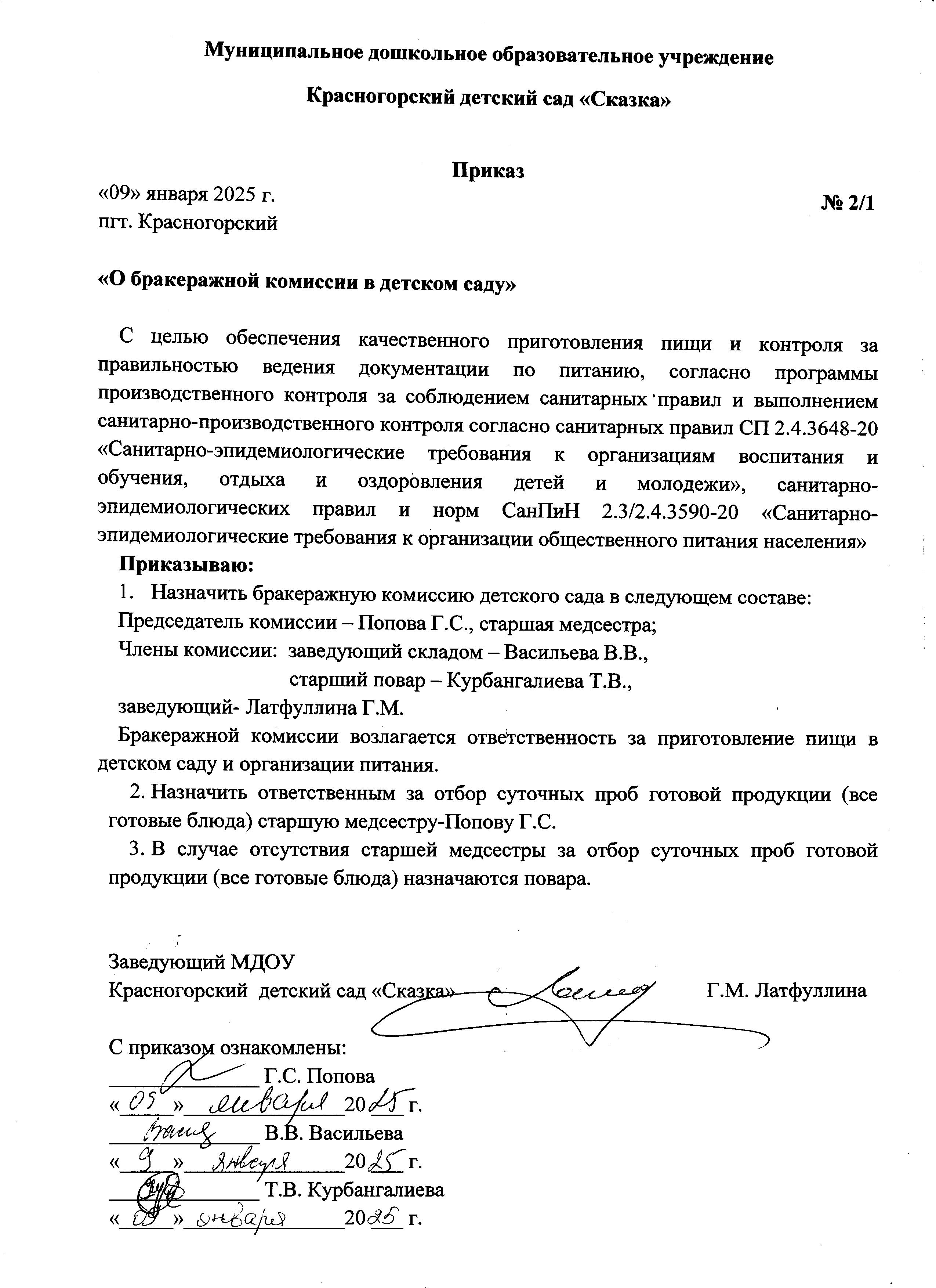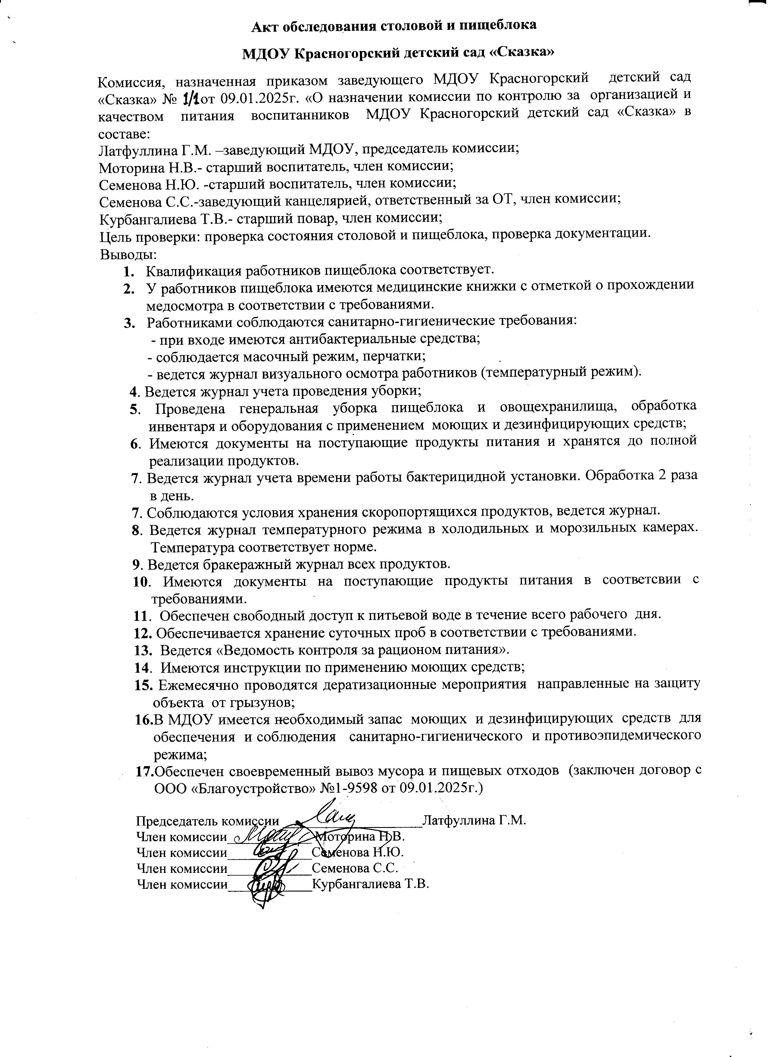 бракеражной комиссии в составе не менее 3-х человек. Результаты контроля