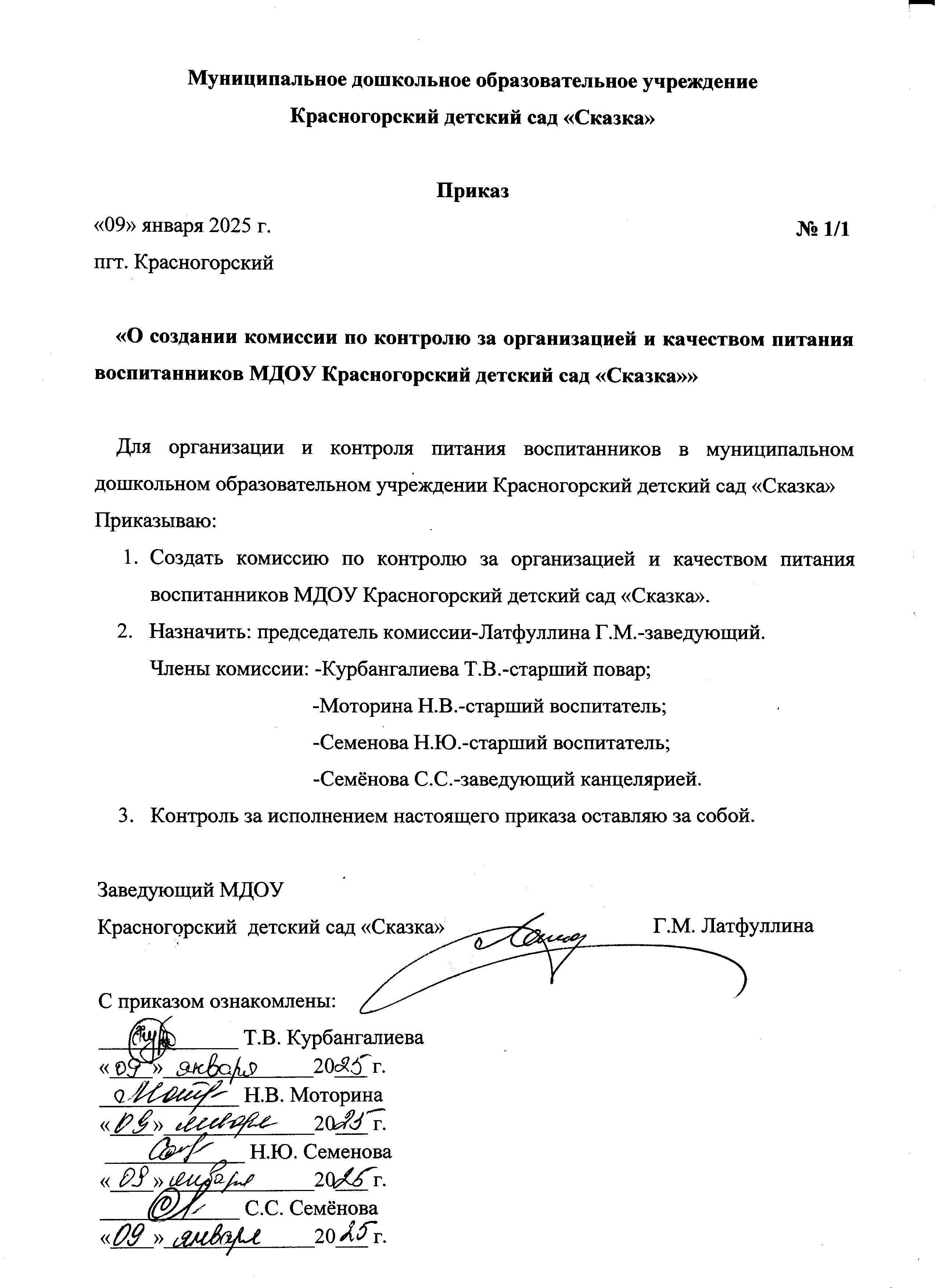 Ответственность за организацию питания детей в детском саду возложена на медицинскую