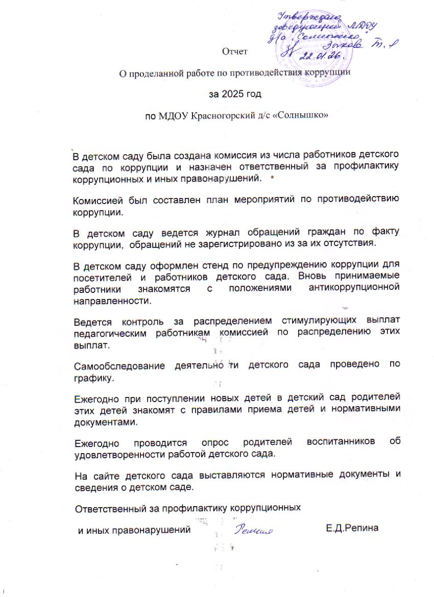 МДОУ Красногорский детский сад «Солнышко» > Противодействие коррупции