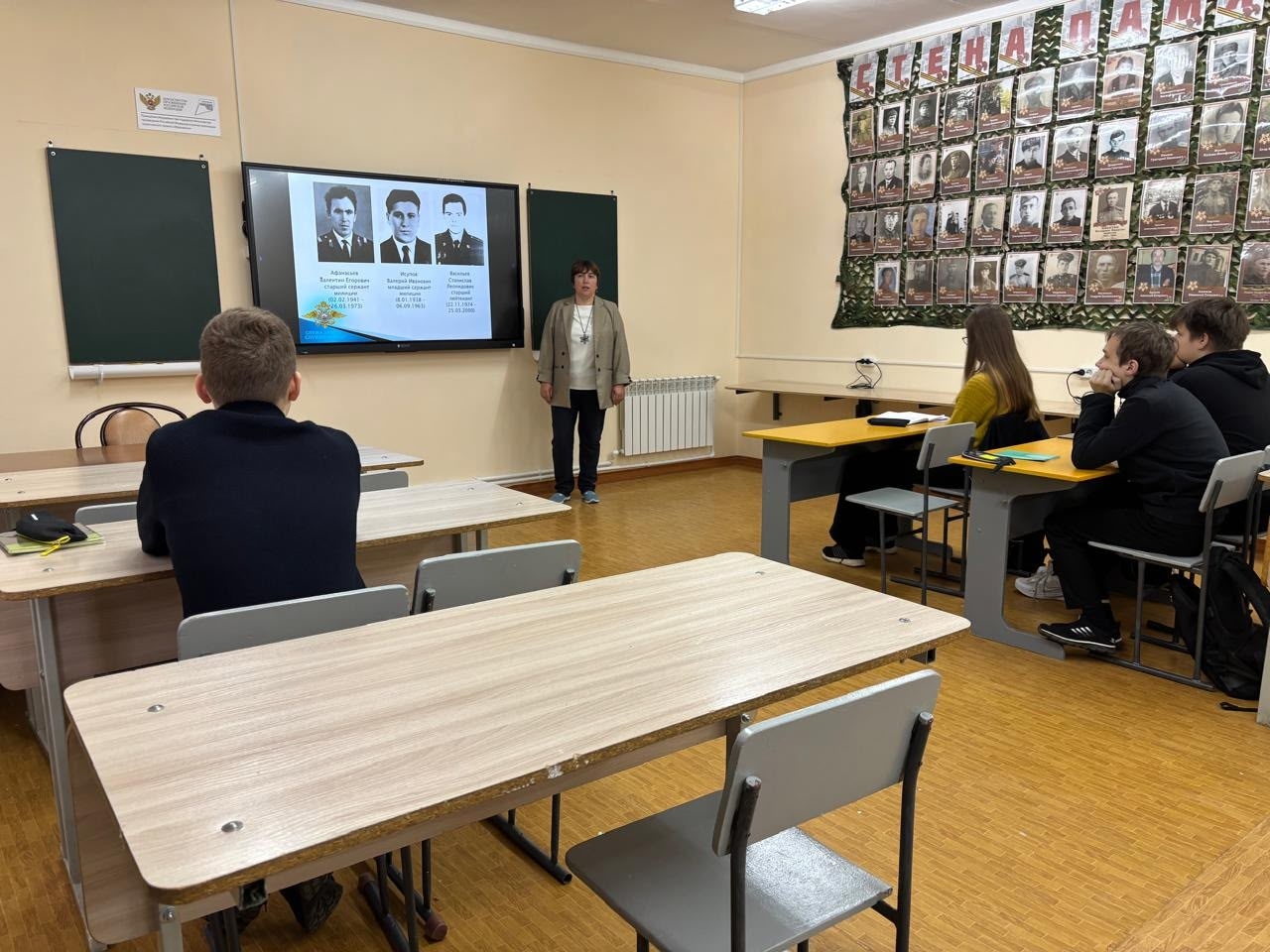 Советником директора по воспитанию Мочаловой Н.П. и преподавателем ОБЗР Тимофеевой М.В. были проведены Уроки мужества «Подвиг во имя жизни». Ребята узнали о героизме наших соотечественников, выполнивших свой долг перед Родиной даже ценой собственной жизни.