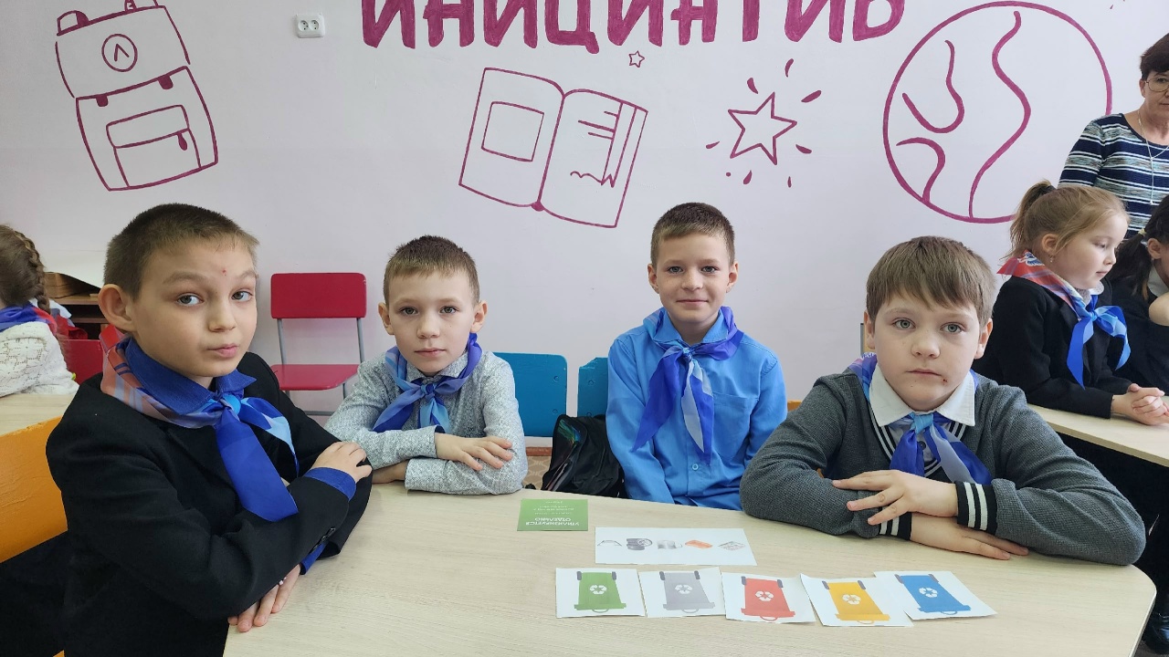 Ребята эмоционально восприняли социальный ролик «Доброта спасёт мир», фрагмент сериала «Барбоскины. Осторожно, экология!». Увлечённо прошла игра «Что в мусорном баке?», в ходе которой школьники учились сортировать мусор.