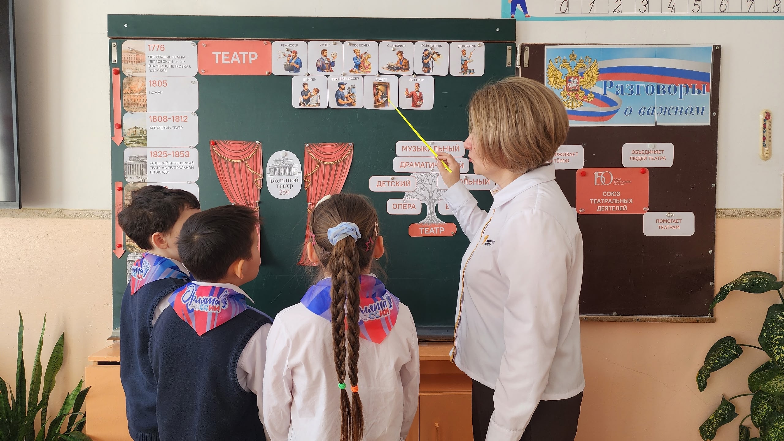 23 марта занятие «Разговоры о важном» было посвящено сразу двум значимым юбилеям: 250-летию Большого театра и 150-летию Союза театральных деятелей России.