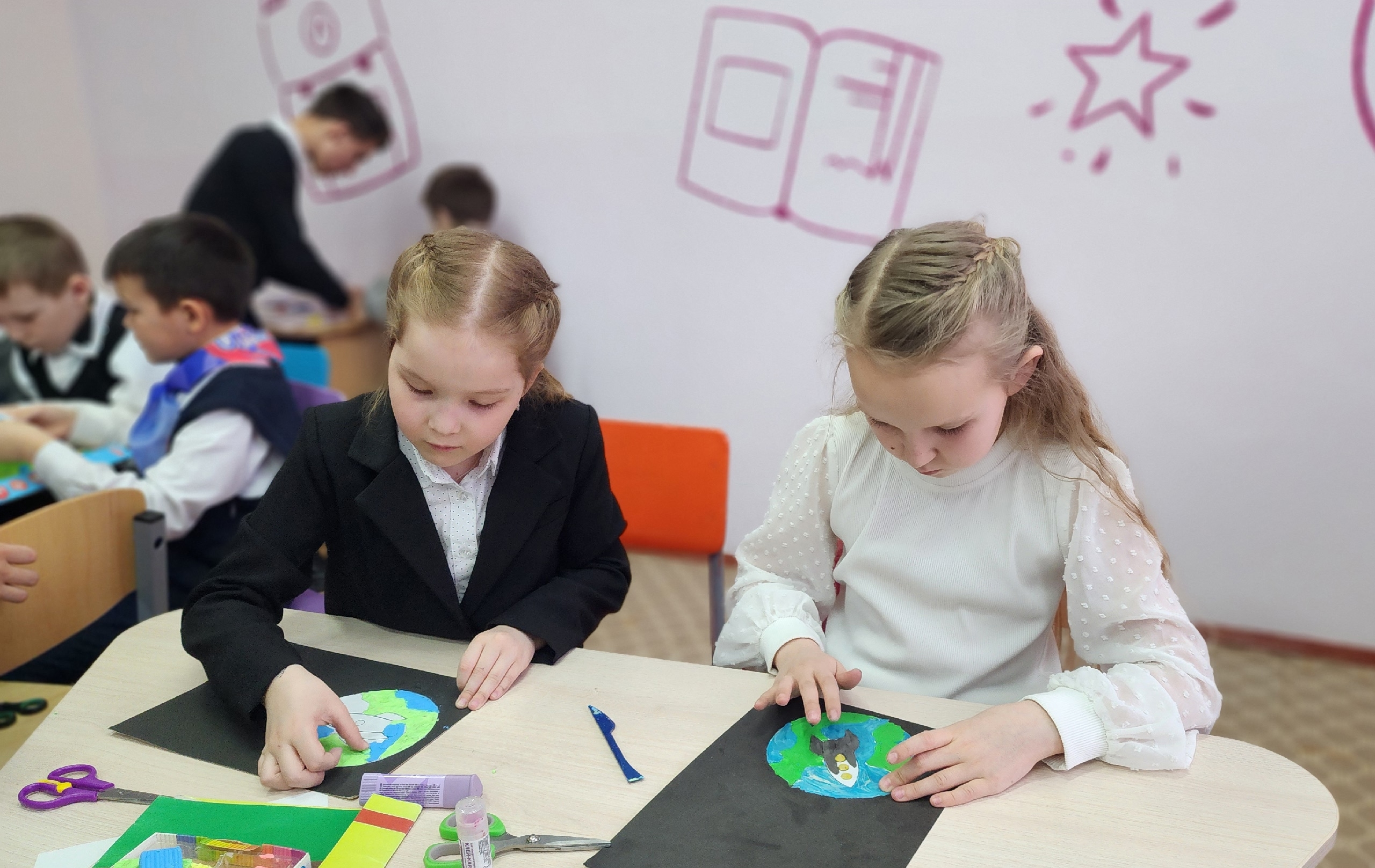 📌 В преддверии этого события юные Орлята России приняли участие в мастер-классе «Космический талисман». ✂📐Ребята изготовили яркие картинки из пластилина.