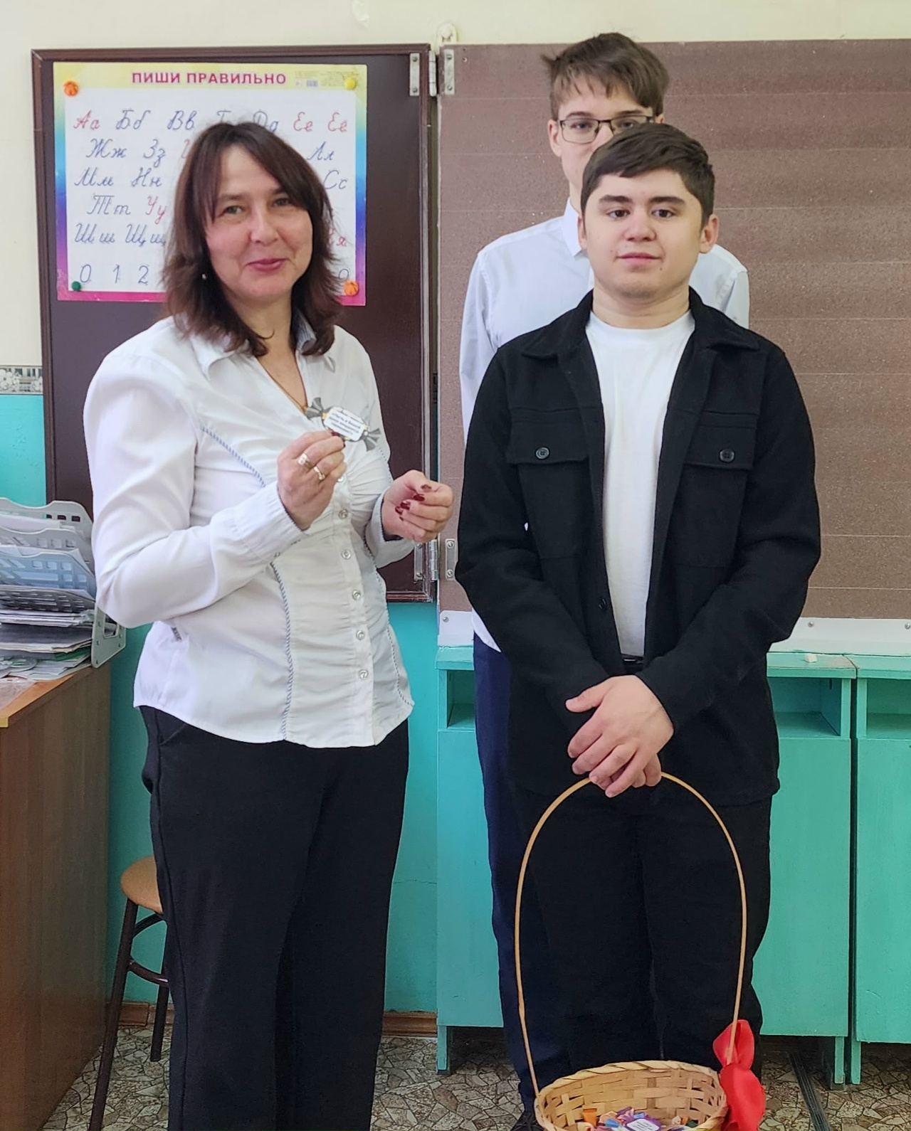 В рамках поручения «Камертон настроения» проекта «Марий Эл — территория заботы и заботливых людей» обучающиеся 11 класса решили подарить всем педагогам и сотрудникам школы заряд позитива и улыбок.