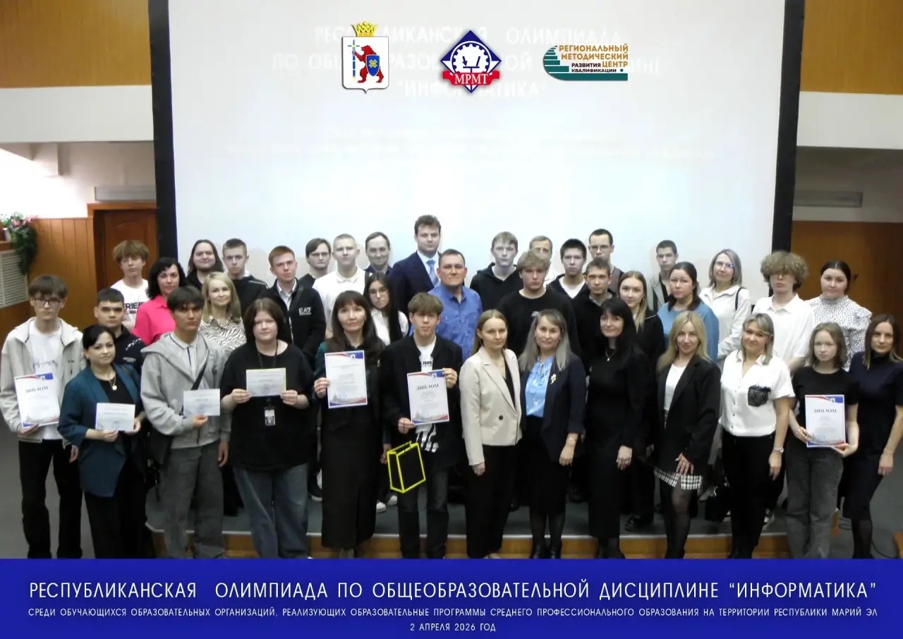 2 апреля 2026 года в соответствии с приказом Министерства образования и науки Республики Марий Эл от 24 февраля 2026 г. № 173 проведена республиканская олимпиада по общеобразовательной дисциплине «Информатика» среди обучающихся профессиональных образовательных организаций, реализующих программы среднего профессионального образования на территории Республики Марий Эл.