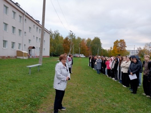 25.09.2025 г. в 17 часов 05 минут прозвучал сигнал учебной пожарной тревоги и голосовое сообщение о возможном возгорании в жилом корпусе. Обучающиеся, руководство, классные руководители и персонал были успешно эвакуированы на стадион лицея. Была проведена перекличка и проверка наличия людей в строю. Время, затраченное на эвакуацию, составило одна минута 35 секунд.