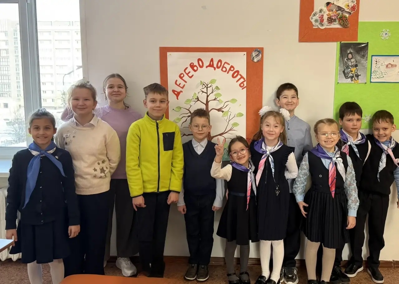 Акция «Дерево доброты» Для учащихся начальных классов была организована увлекательная и значимая акция под названием «Дерево доброты», приуроченная Дню освобождения Красной Армией крупнейшего «лагеря смерти» Аушвиц Биркенау — Международному дню памяти жертв Холокоста. Цель акции заключалась в формировании понимания ценности доброты, развитии способности сочувствовать другим людям и мотивировании детей совершать добрые поступки. Для участия ребята изготавливали разноцветные бумажные листики, на которых писали искренние пожелания мира и добра своим одноклассникам, учителям и близким людям . Подготовленные учениками листочки были прикреплены к специальному дереву, символизирующему рост доброты и заботы друг о друге .!