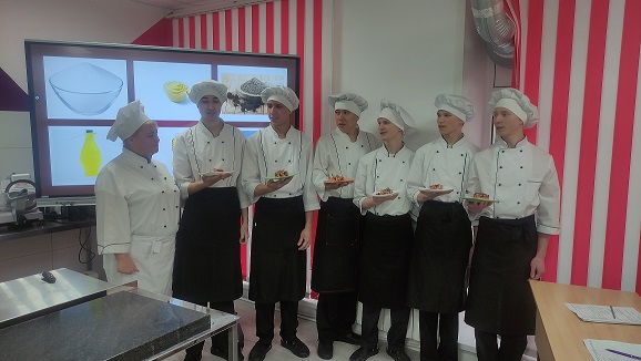 10 декабря Жунусова Наталья Фаритовна, ставшая финалистом в республиканском конкурсе профессионального мастерства педагогических работников системы среднего профессионального образования «Лучший мастер-класс среди преподавателей и мастеров производственного обучения, обеспечивающих освоение обучающимися дисциплин общепрофессионального цикла и профессиональных модулей» провела Открытый мастер-класс в присутствии членов конкурсного жюри. Под её руководством студенты приготовили "Винегрет» - блюдо русской кухни, основанное на традиционных русских продуктах, вкусовых сочетаниях, но с особым ингредиентом - кедровыми орешками.